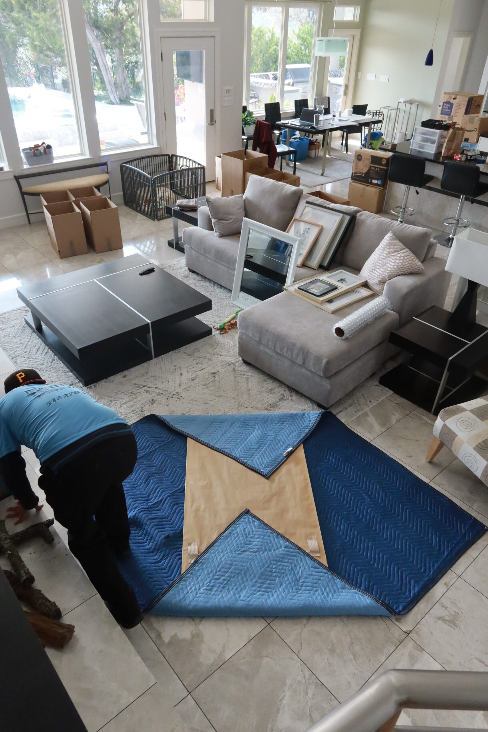 Every piece of furniture gets wrapped in moving blankets. Upholstered items get plastic wrap. Wood surfaces get corner protectors. We protect floors and doorframes at both your old and new home. If it can get scratched, dented, or dinged, we protect it.